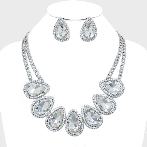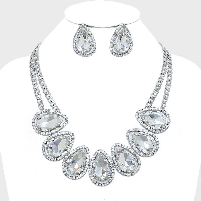 Crystal Teardrop Stone Necklace Set
