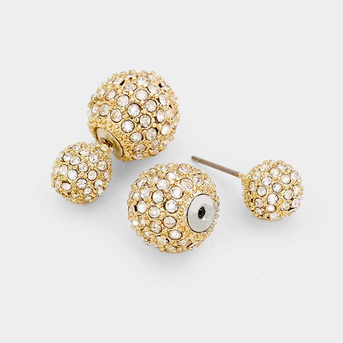 • Style No : 0826 • Color : Gold, Clear • Size : 3/8″ W, 1/2″ W • Double-sided / Crystal • Double-sided Crystal Stud Earrings
