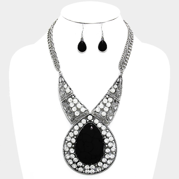 - Crystal Teardrop Stone Necklace Set