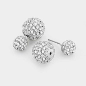 • Style No : 0828 • Color : Silver, Clear • Size : 3/8″ W, 1/2″ W • Double-sided Crystal Stud Earrings